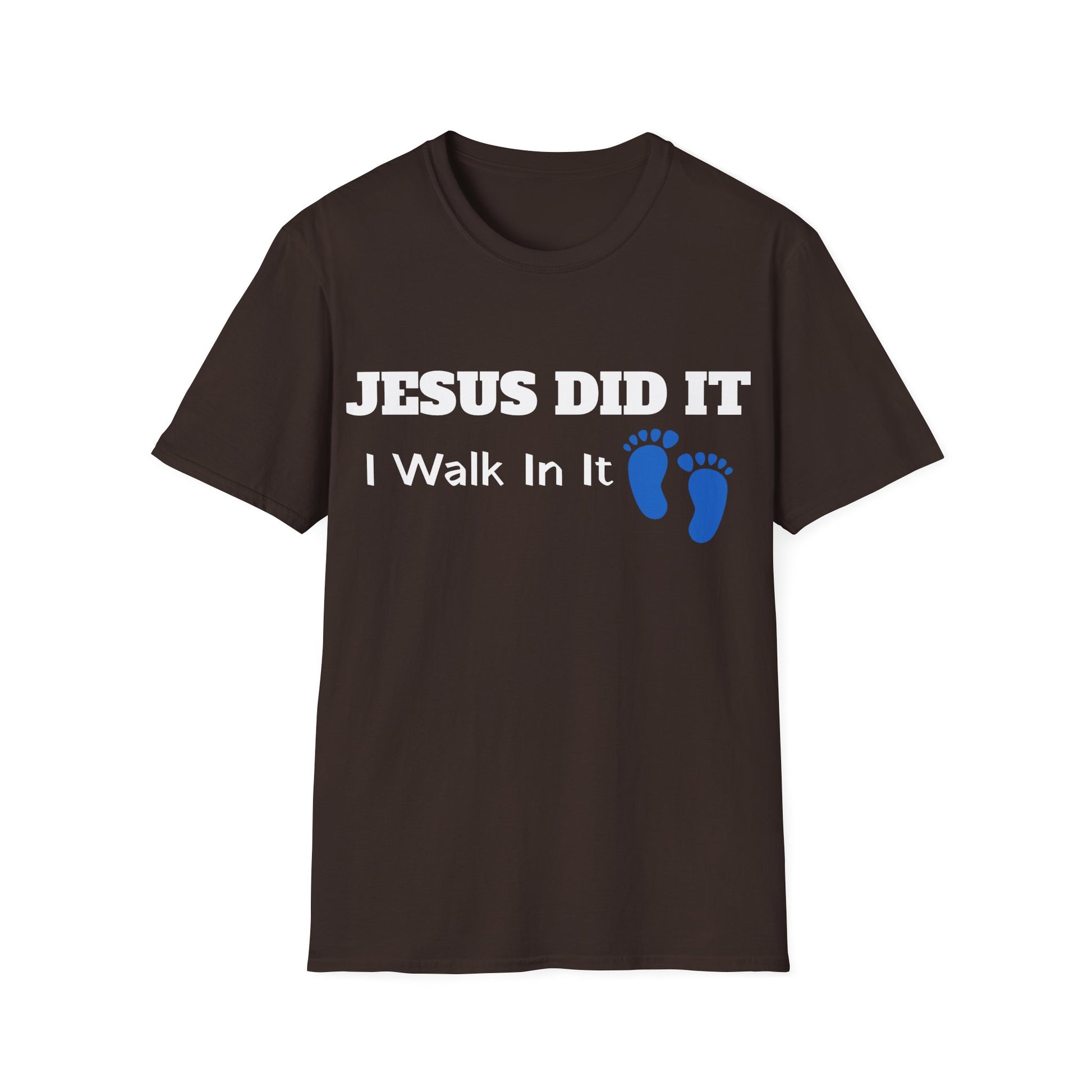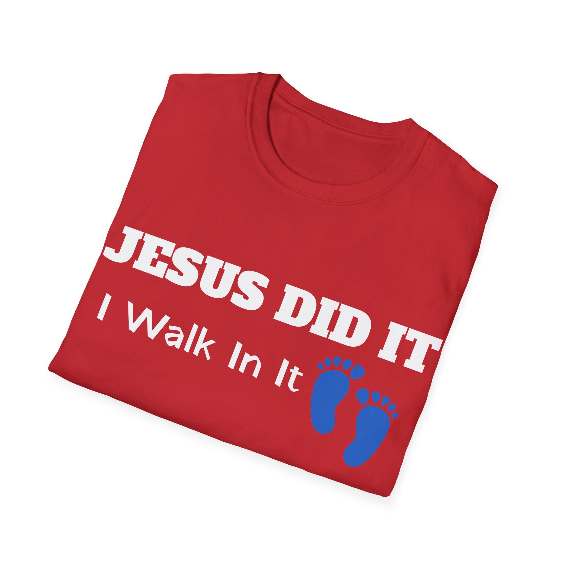 This Jesus Did It, I Walk In It Tshirt with the 'it is finished' type of message design is perfect for those who want to make a statement of faith. It provides a sense of peace and assurance while wearing it, fitting seamlessly into the wardrobe of any believer. Relevant for Easter, Christmas, and everyday wear for Christians.